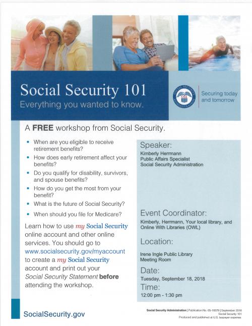 A video workshop sponsored by Online With Libraries (OWL network) to help answer key questions about applying for and receiving Social Security benefits.